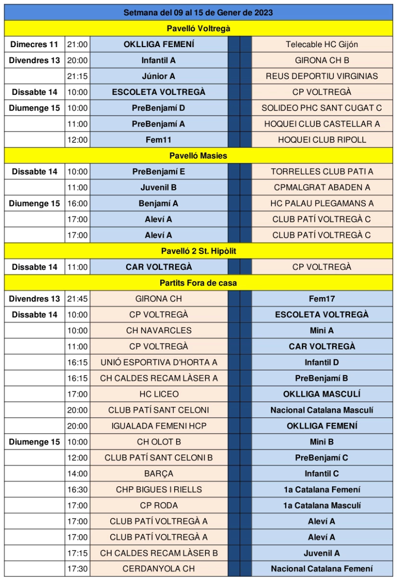 Aquests són els horaris dels partits de l'escola del CP Voltregà per aquesta setmana.