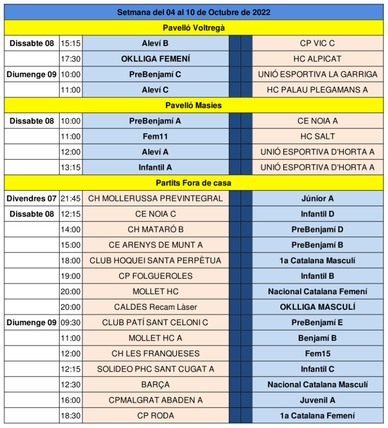 Partits del cap de setmana del 8 i 9 d'octubre de 2022